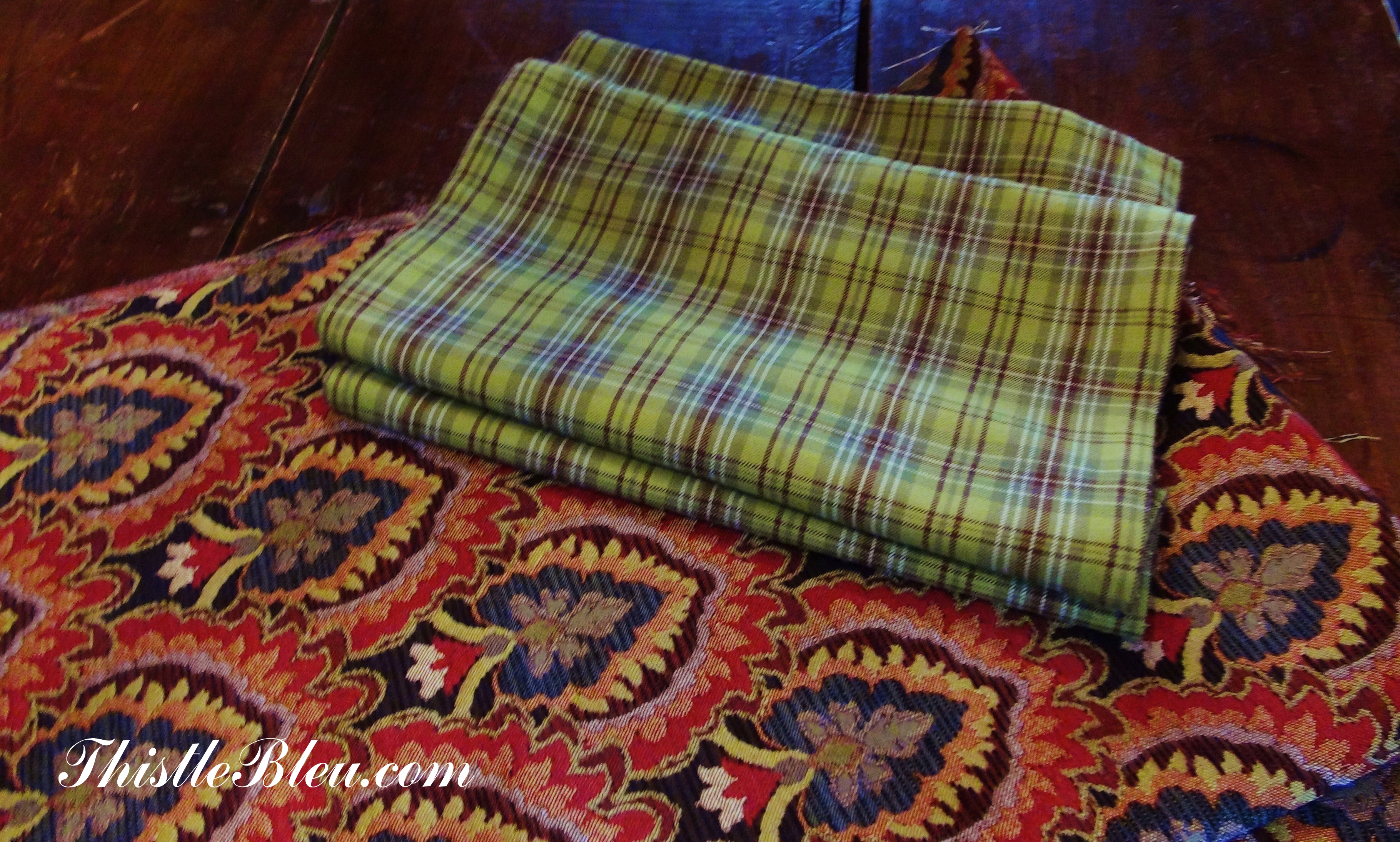 This Kelly green light weight wool plaid was a leftover remnant from another table runner so I used it for the lining.