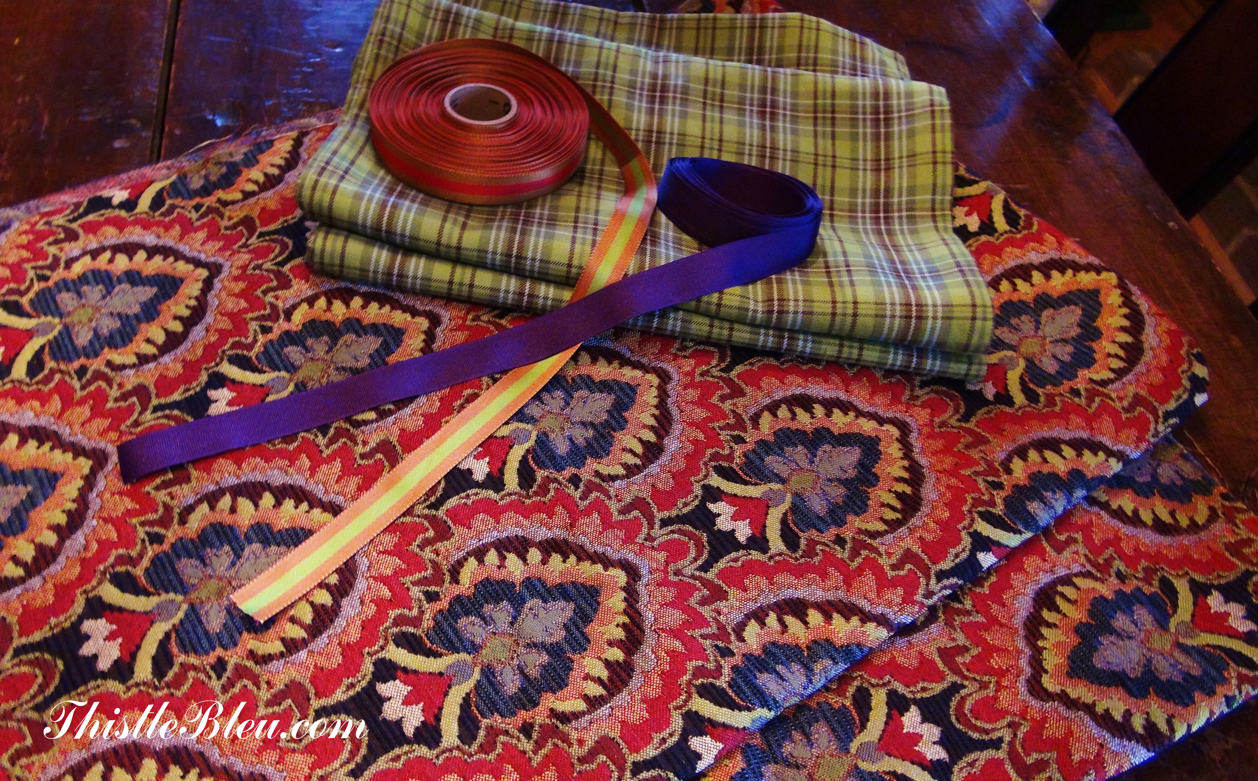 The black and white roping worked as an accent.  Most of my trimmings come from Berwick Offray Ribbon Outlet Store in Hagerstown, MD.  Most ribbons sell for about 10 cents per yard so I buy them by the bolt.