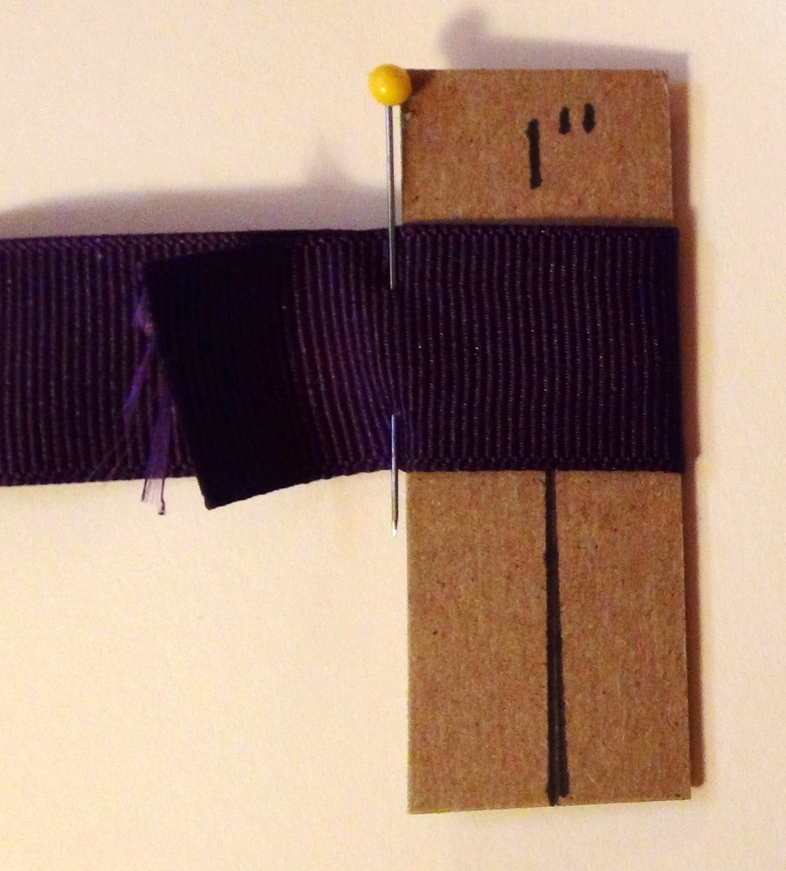 DSC06539Wrap the ribbon around the cardboard guide and insert a pin (yellow pin).